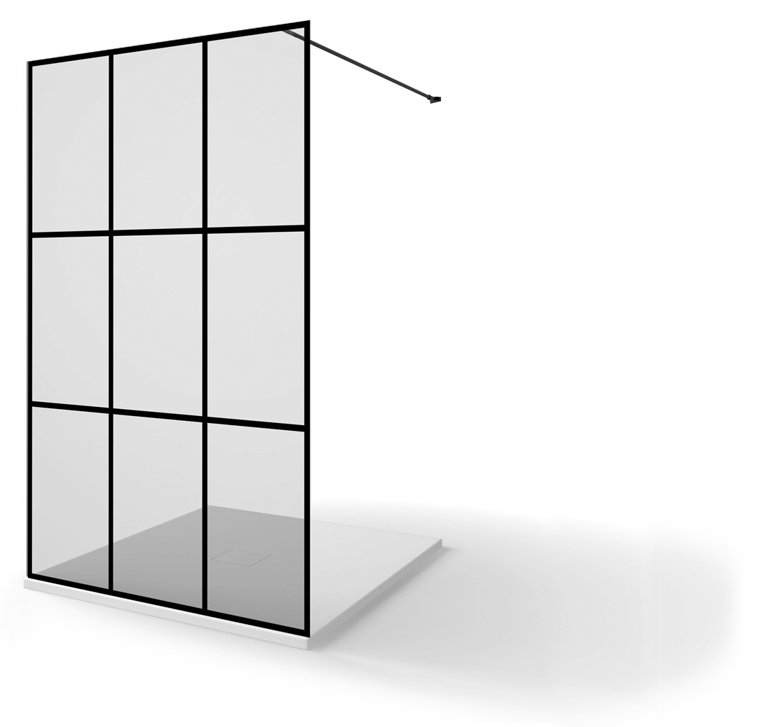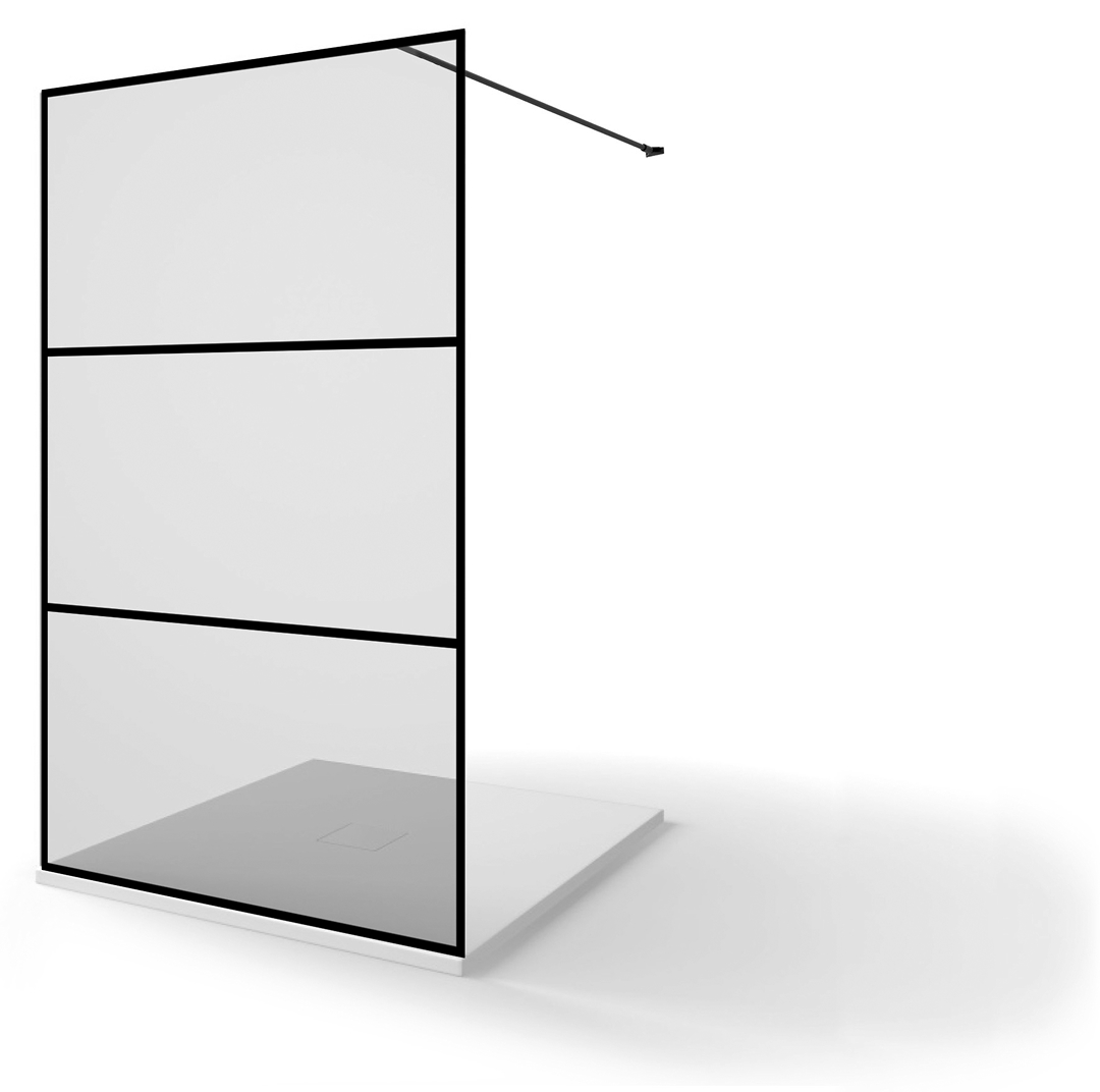 DUCHA 1 HOJA FIJA 3 CUARTERONES NEGROS HORIZONTALES SERIGRAFIADOS