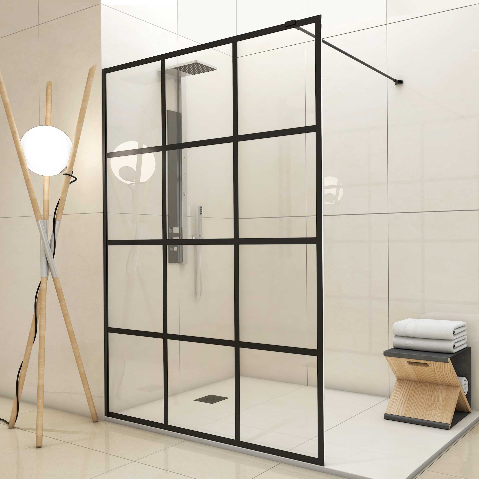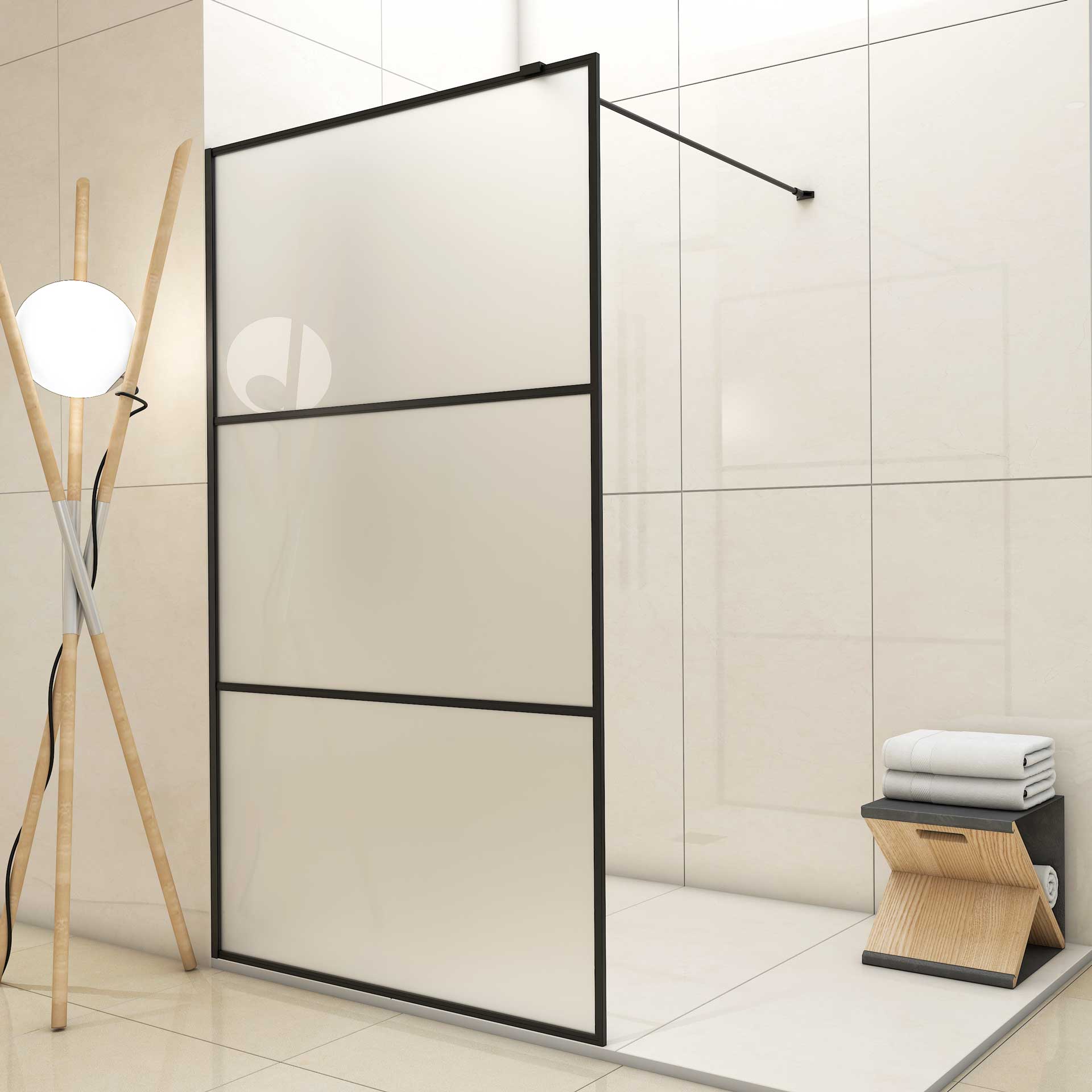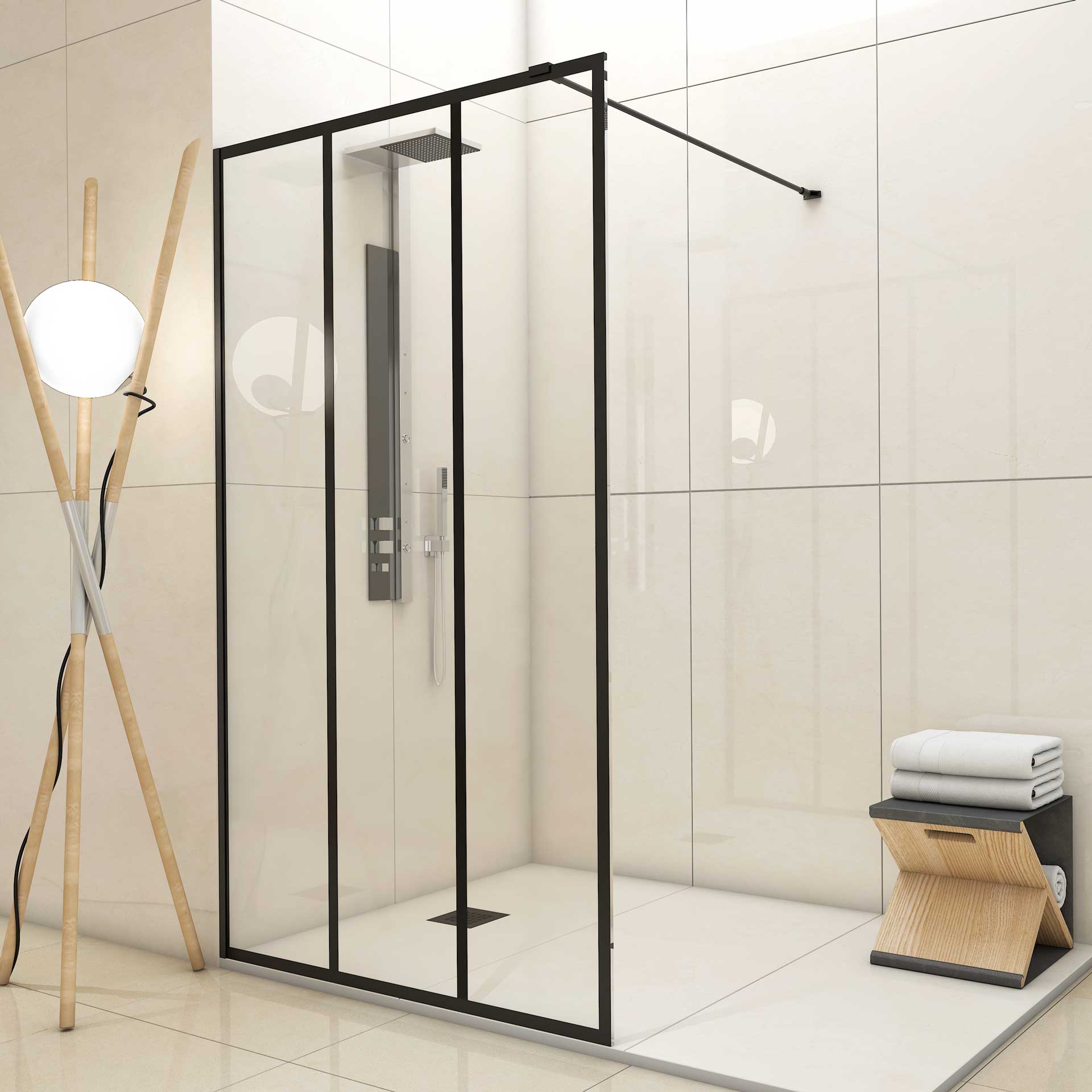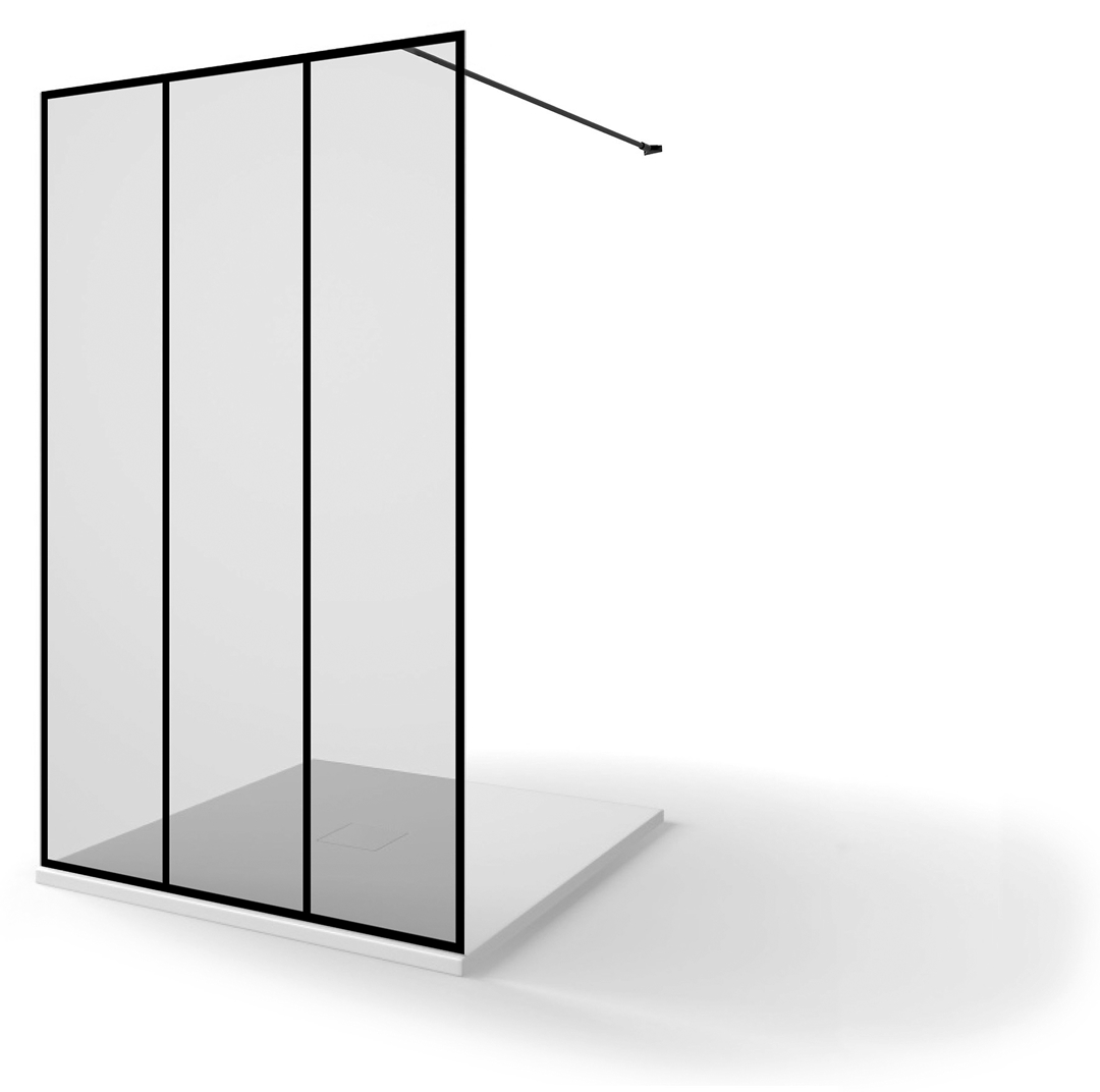 DUCHA 1 HOJA FIJA 3 CUARTERONES NEGROS VERTICALES SERIGRAFIADOS
